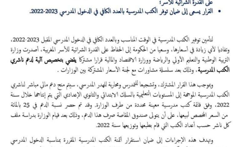 🔹️القرار يسعى إلى ضمان توفر الكتب المدرسية بالعدد الكافي في الدخول المدرسي 2023-2022.