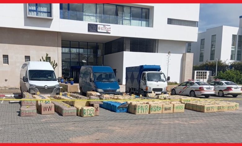 وقد قادت عملية التفتيش المنجزة بداخل السيارات النفعية الثلاث إلى العثور بداخلها على مجموعة من رزم مخدر الشيرا الموجهة للتهريب الدولي، والتي بلغ مجموع وزنها 11 طنا و755 كيلوغراما، علاوة على 10 لوحات ترقيم مزورة للسيارات.