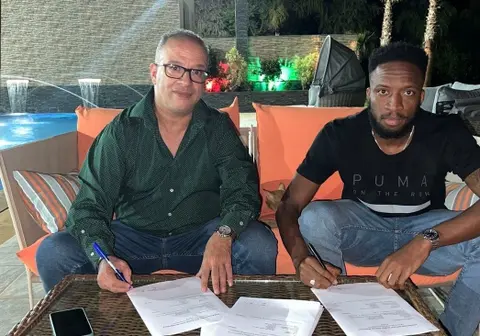 كما نشر عزيز البداروي رئيس النادي الأخضر عبر صفحته الشخصية بمواقع التواصل الاجتماعي صورة له رفقة اللاعب أهولو لحظة توقيع العقد.