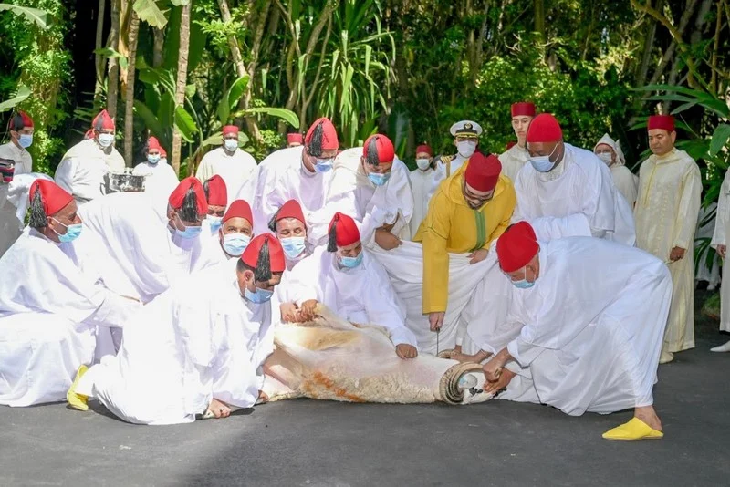 إثر ذلك، قام الملك بنحر أضحية العيد، اقتداء بسنة جده المصطفى صلى الله عليه وسلم، فيما قام الإمام بنحر الأضحية الثانية.