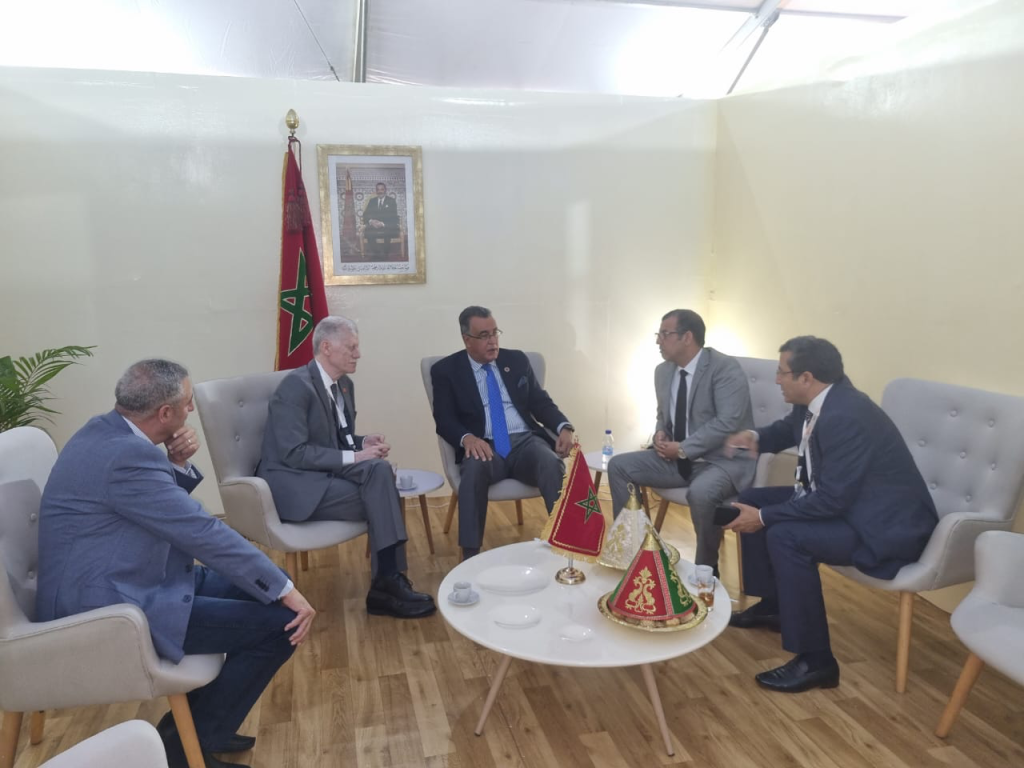 على هامش أشغال النسخة الثانية من معرض الجماعات الذي يقام الان بمدينة أبيدجان بدولة كوت ديفوار والذي يعرف مشاركة الجمعية المغربية لرؤساء مجالس العمالات والأقاليم ممثلة بوفد هام، عقدت اليوم، 30 شتنبر 2022، جلسة عمل جمعت كل من السيد عبد المالك الكتاني، سفير المغرب بالكوت ديفوار والسيد عبد الوهاب الجابري، العامل المكلف بالتعاون والتوثيق بالمديرية العامة للجماعات الترابية و السيد عبد العزيز الدرويش رئيس الجمعية المغربية لرؤساء مجالس العمالات والاقاليم والسيد المدير العام لشركة مارتشيكا ميد سعيد زارو، للإطلاع على مشروع حماية وتثمين خليج كوكودي والذي تكلفت الوكالة بمساعدة كوت ديفوار في تنفيذه.