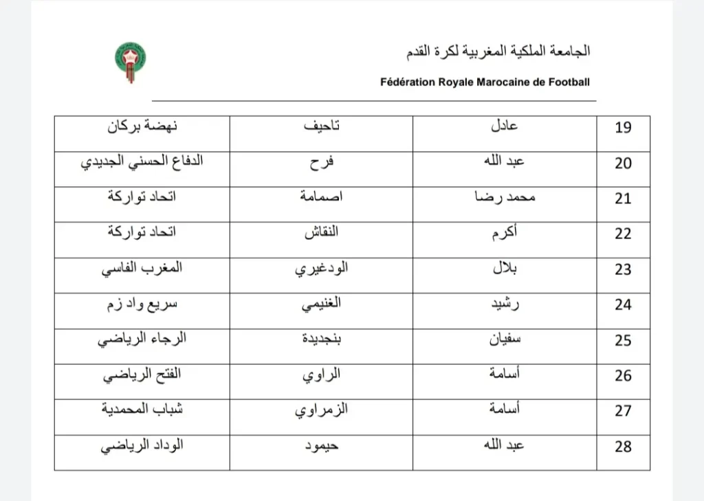 و لهذا الغرض تم توجيه الدعوة إلى 28 لاعبا ويتعلق الأمر بكل من: