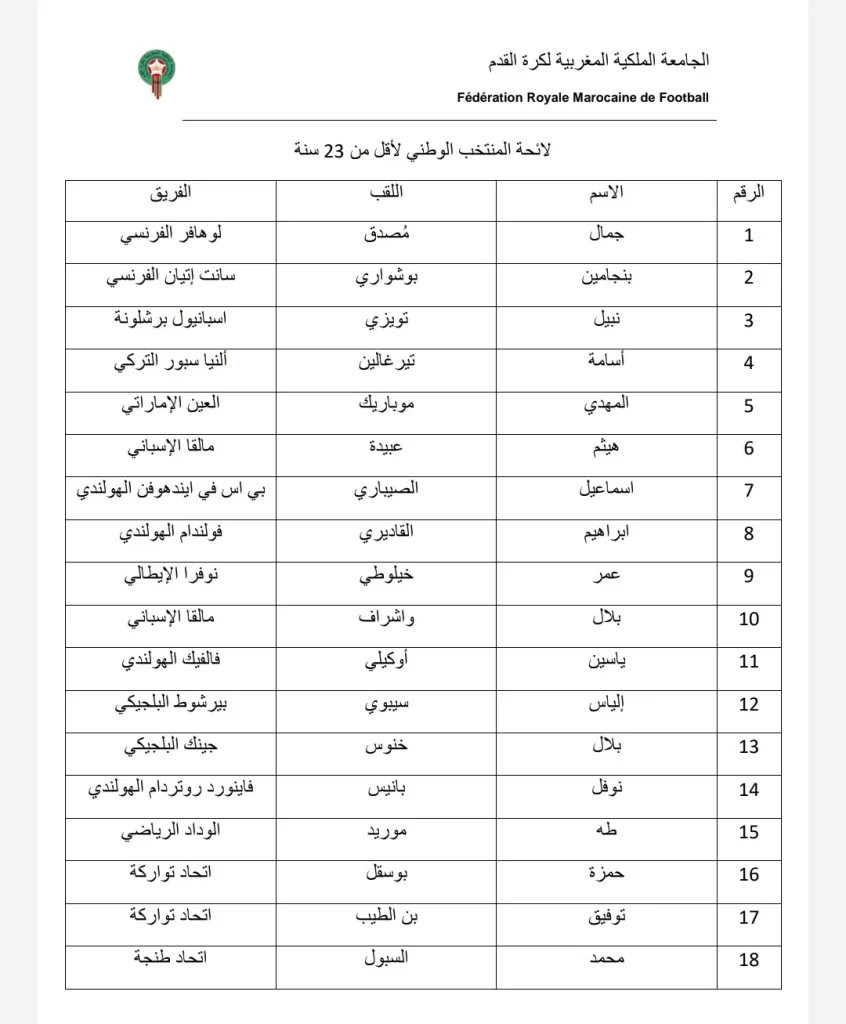 منتخب أقل من 23 سنة يجتمع بالمعمورة و استدعاء لاعبين جدد من أوروبا