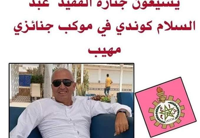 وفد اتحاد النقابات الوطنية لوزارة “ش.ث.ت” UGTM يشيع جثمان الراحل “عبد السلام كوندي” بمسقط رأسه ببني ملال.