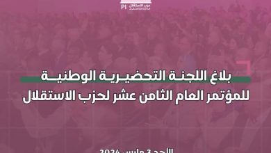 بلاغ اللجنة التحضيرية الوطنية للمؤتمر الثامن عشر لحزب الاستقلال حول واقعة صفع البرلماني “منصف الطوب”.
