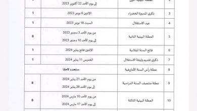 لائحة العطل المدرسية للموسم الدراسي 2023-2024