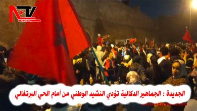الجديدة الجماهير الدكالية تؤدي النشيد الوطني من أمام الحي البرتغالي