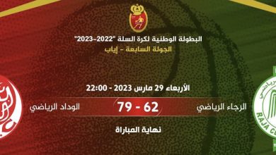 نيوتيفي-كنزة البازي فاز الوداد الرياضي على غريمه التقليدي الرجاء بنتيجة 79 مقابل 62، في المواجةالتي جمعتهما مساء اليوم الأربعاء بالدار البيضاء. وتدخل المواجهة التي جمعت الفريقين داخل القاعة المغطاة التابعة للمركب الرياضي محمد الخامس بالدار البيضاء، ضمن إياب الجولة الـ7 من البطولة الوطنية “2022-2023”. وتحكمت عناصر الوداد الرياضي في المباراة منذ…